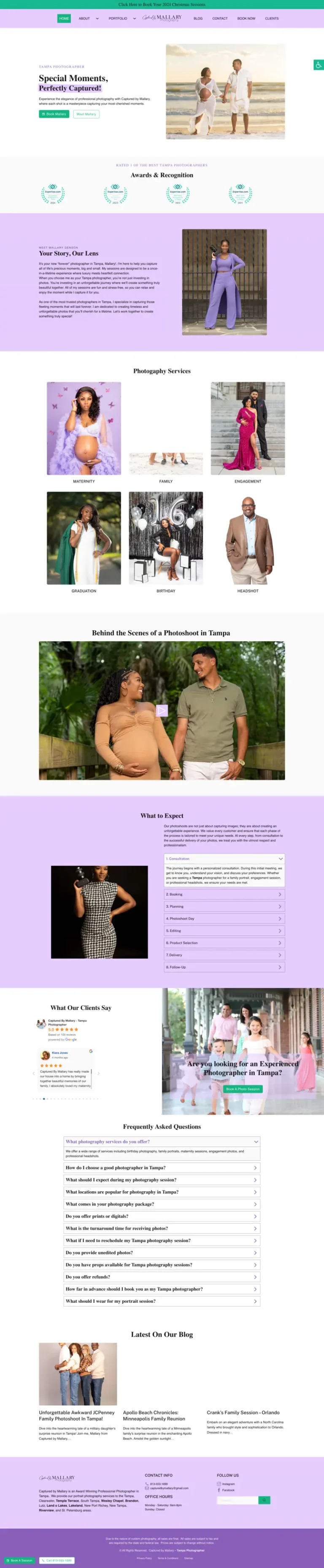 At Dominate Solutions, we had the pleasure of partnering with Captured by Mallary to elevate her brand’s reach and connect her artistry with a broader audience. Understanding the unique vision Mallary brings to portrait and lifestyle photography, we crafted a visually compelling and highly navigable website designed to showcase her portfolio while optimizing for client engagement and lead generation. Our strategic design approach not only highlights her work but also integrates effective calls-to-action, streamlining the booking process and enhancing her online visibility. The result is a brand-centric platform that strengthens Mallary’s presence in a competitive market, turning website visits into valuable client inquiries.